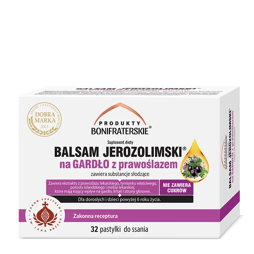 BALSAM JEROZOLIMSKI® na GARDŁO z prawoślazem 32 pastylki do ssania - suplement diety