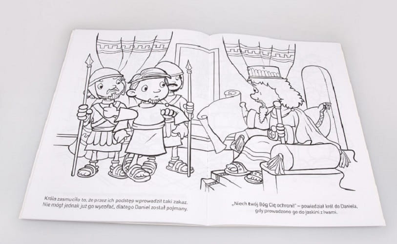 Kolorowanka przybliży najmłodszym historię obdarzonego darem mądrości Daniela, ocalonego przez Boga po wrzuceniu do jaskini pełnej wygłodniałych lwów.