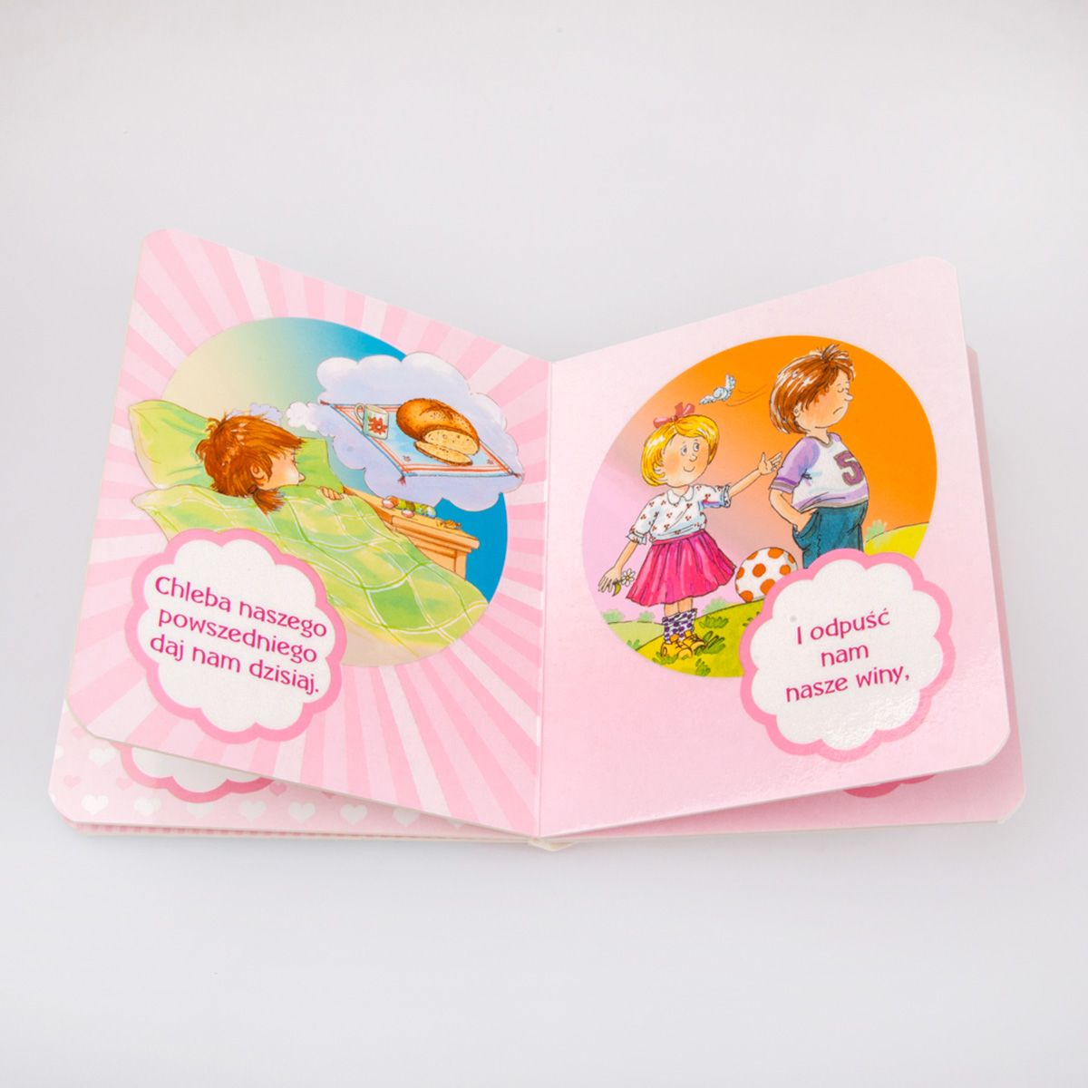 Książeczka z nowej, niezwykle kolorowej serii Modlitwy dziecka. Prezentowany tytuł to wersja: tylko dla dziewczynek. Publikacja pomoże rodzicom, dziadkom, katechetom, nauczycielom, wszystkim opiekunom naszych dzieci w nauczeniu ich najważniejszych modlitw, które powinien znać każdy chrześcijanin. Ilustracje Artura Nowickiego z pewnością sprawią dziewczynkom przyjemność podczas spotkania z tymi książeczkami, wywołując uśmiech na dziecięcych twarzach. Jednak ich zadanie jest również edukacyjne. Scenki z życia dziecka uczą lub wyjaśniają sens danej frazy modlitwy. Zaczynamy serię od Ojcze nasz, czyli modlitwy do Ojca niebieskiego, której nauczył nas sam Jezus.