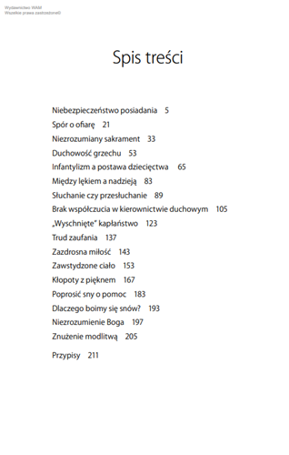 Ksiądz Krzysztof Grzywocz przeprowadza nas przez najtrudniejsze dla rozwoju osobistego i duchowego tematy. Dotyka ludzkich pragnień, niechcianych emocji, słabości i dylematów, które codziennie towarzyszą każdemu z nas. Głęboka i poruszająca refleksja na temat kondycji współczesnego człowieka, jego psychiki, cielesności i duchowości.