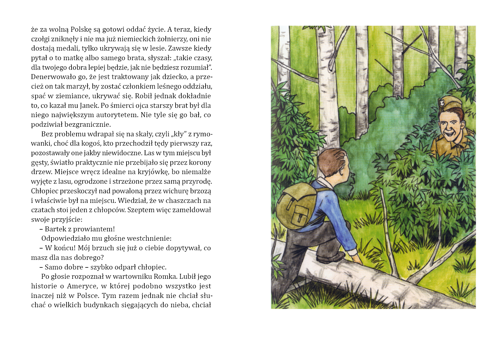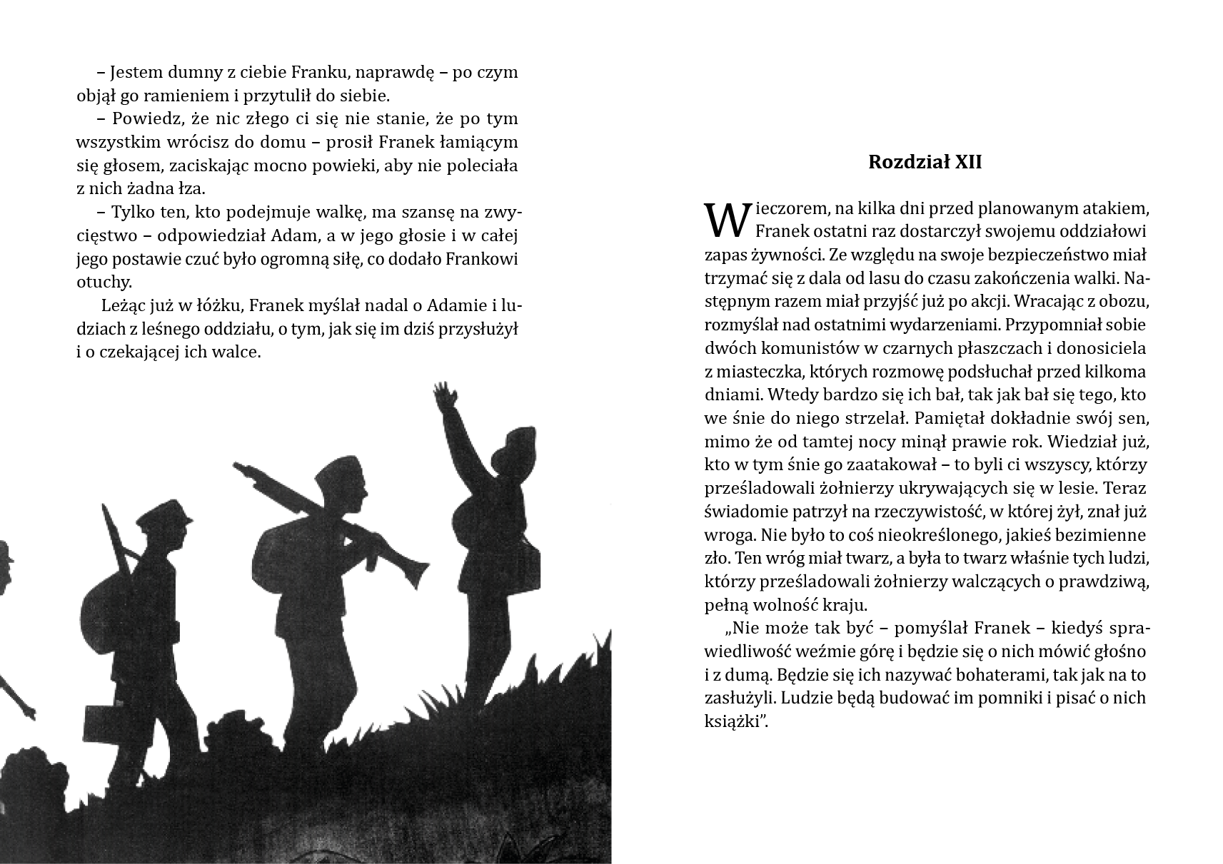 Drogi Czytelniku, nie będzie tu smoków, księżniczek i czarów. Zabieramy Cię w podróż do prawdziwego świata. Bohaterowie, o których przeczytasz, byli tacy jak Ty. Może nawet nosili to samo imię. Dlaczego żyli w lesie? Przed kim się ukrywali? Chcemy opowiedzieć Ci historię niezwykłą, która mogła się wydarzyć. W tym tajemniczym lesie zapomnisz na chwilę o komputerze, grach. Zapomnisz nawet, że czytasz ją w wygodnym fotelu. Będziesz czuł zapach ogniska, usłyszysz szum lasu, a na polanie zobaczysz ich - Żołnierzy Wyklętych.