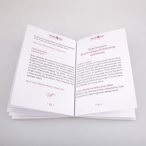 Dla ułatwienia książeczki posiadają skrzydełko-zakładkę, aby bez przeszkód wrócić do wybranej modlitwy. Strony ozdobione są kolorowymi ornamentami, aby modlitwa była miłym czasem spędzonym ze świętymi.